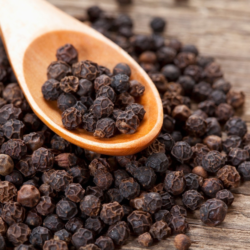 Le poivre noir, est l'une des épices les plus anciennes et les plus utilisées au monde. Le poivre noir est riche en pipérine, un alcaloïde qui lui confère son goût piquant. Cette molécule stimule la digestion, favorise la circulation sanguine et possède des propriétés antioxydantes. Le poivre noir est également utilisé en aromathérapie pour ses vertus stimulantes et énergisantes.